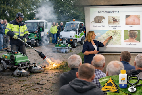 Daarnaast besteden we aandacht aan een minstens zo belangrijk onderwerp: de gezondheid en veiligheid van onze medewerkers. Het Nederlands Centrum voor Beroepsziekten verzorgt een presentatie over de preventie van beroepsziekten, zoals de ziekte van Weil, TBE, Lyme en huidkanker. Bewustwording en preventie zijn essentieel om duurzaam en veilig te kunnen blijven werken in het groen.